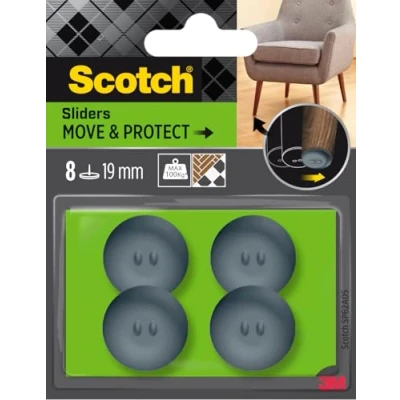 Scotch Move & Protect Sliders SP62A05, Adhesive, Grey, Ø 19 mm, 8/Pack 100 Kg
