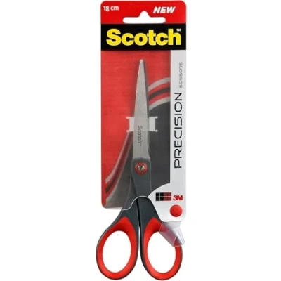 In 2025 Scotch Brand celebrates its 100 year anniversary of bringing your ideas to life; let’s create, fix and do MORE together for the NEXT 100 years Scotch Precision Scissors come with quality stainless steel blades for a sharp edge and long cutting life; Tension adjustable screw for optimised usage Scotch scissors' precision-sharpened blades are perfect for materials that require precise cutting; They're ideal for everyday needs and come with a soft comfort grip handle for ease of use Scotch multi-purpose scissors, with a comfortable handle designed for both right and left hand use, are high-performance and created for maximum endurance and precision Our selection of high performance scissors are designed for maximum endurance and precision Pack contains one pair of Scotch Precision scissors with stainless steel blades and comfort grip; The blades are 18 cm long, and the handle comes in beautiful red and grey