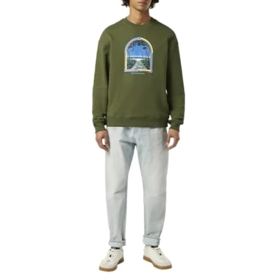 Scotch & Soda Men's Front Artwork Relaxed Fit Crewneck Sweatshirt, Army, XL