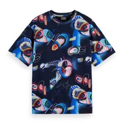 Scotch & Soda Men's Relaxed fit T Shirt, Abstract Island Night AOP, M