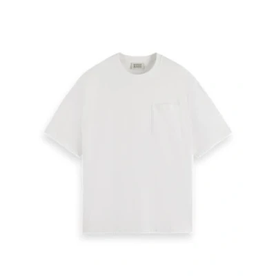 Scotch & Soda Men's 3 Crosses Pocket Loose Fit T Shirt, White, L