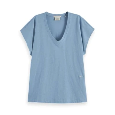 Scotch & Soda Slub V Neck T Shirt Faded Denim