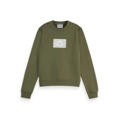 Scotch & Soda Women's Chest Artwork Fitted Sweatshirt, Washed Military, L