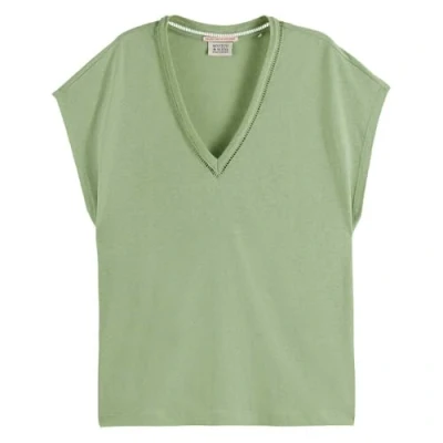 Scotch & Soda Women's Cotton Linen V Neck T Shirt, Pistachio, M