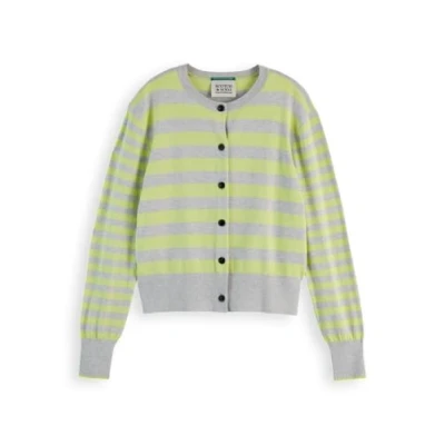 Scotch & Soda Women's Crew Neck Relaxed Cardigan Sweater, Light Grey Melange Stripe, S