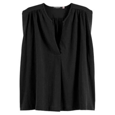 Scotch & Soda Women's Drapey V Neck T Shirt, Black, S
