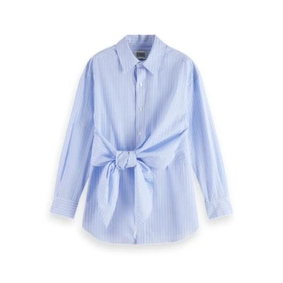 Scotch & Soda Women's Knotted Shirt, Sky Blue/White Stripe, 6