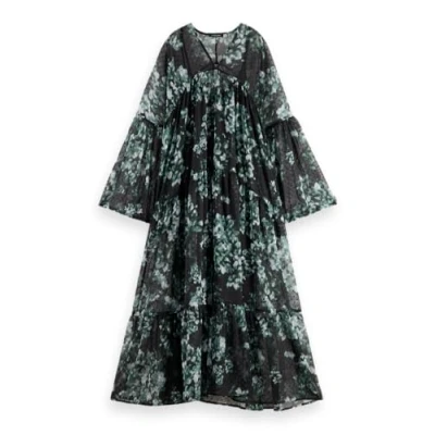 Scotch & Soda Women's Maxi Dress Casual, Nieuw Blossom Print Park Green, 38 R