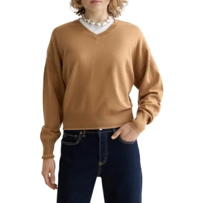Scotch & Soda Women's Core V Neck Relaxed Pullover Sweater, Tobacco Melange, S