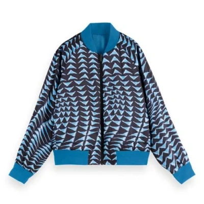 Scotch & Soda Women's Reversible Printed Bomber, House of Mirrors Blue/Black, XL