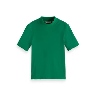 Scotch & Soda Women's Rib Mock Neck T Shirt, Lake Blue, S