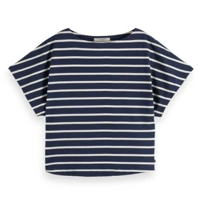 Scotch & Soda Women's Slash Neck Jersey top, Midnight Blue/Soft Ice, L