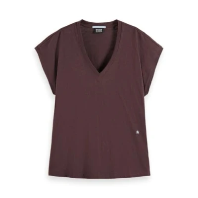 Scotch & Soda Women's Slub V Neck T Shirt, Chocolate Plum, S