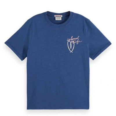 Scotch & Soda Women's Embroidered Artwork Regular fit T Shirt, Atlantic Blue, L