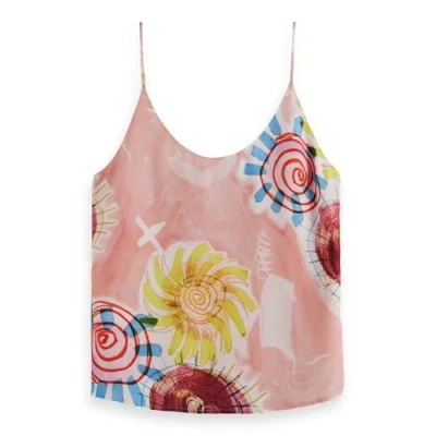 Scotch & Soda Womens Jersey Woven Tank Top, Abstract Sun Pink, 14 UK