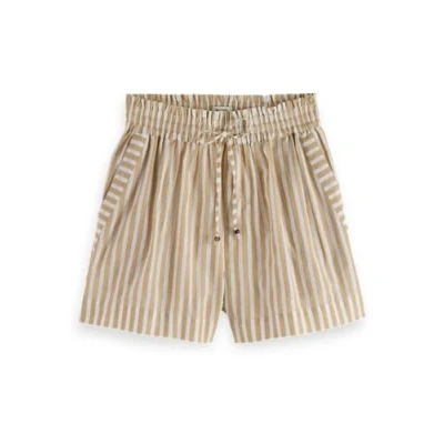 Scotch & Soda Women's Printed Linen High Rise Shorts, Desert Sand Stripe with Lurex, S