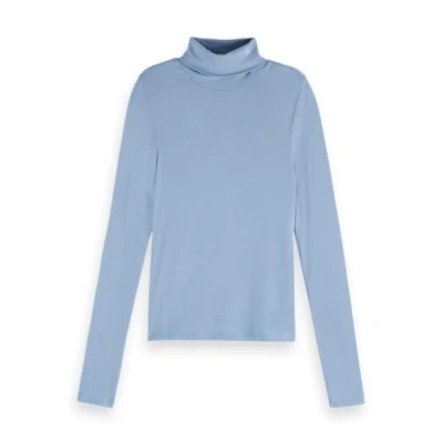 Scotch & Soda Womens Roll Up Neck Ls T Shirt, Faded Denim, M UK