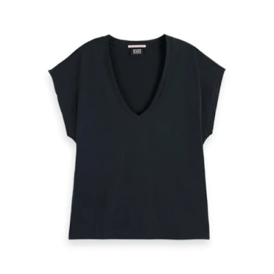 Scotch & Soda Women's Slub V Neck T Shirt, Black, M