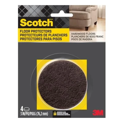 Ideal for use on furniture, lamps and décor that sit on finished surfaces Easy-to-apply, self-stick design Felt allows you to move furniture easily Reliable protection from nicks, dents and scratches Great for protecting hardwood floors Color: Brown Size: 3 in. x 3 in Package Contents: 4/Pack, Weight: 0.084 Pounds, Manufacturer: 3M