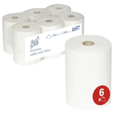 Scott, 6697, Slimroll Hand Towels , 1 Ply, White, 6 rolls x 190 m