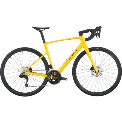 The Addict 40 blends road performance with comfort-focused design. Its lightweight carbon frame, relaxed endurance geometry and electronic shifting make it a smooth, efficient bike for long days in the saddle on varied road surfaces.Key Features:Frame: Addict HMF carbon frame with endurance geometry and integrated storageFork: HMF carbon fork with flat-mount disc designDrivetrain: Shimano 105 Di2 2x12 electronic drivetrainBrakes: Shimano 105 hydraulic disc brakesWheels: Syncros RP2.0 Disc wheels with Schwalbe ONE 34c tyresStandout: Clearance for tyres up to 38mm for added comfort and versatilityFinance: Available with 0% APR financeThe Scott Addict 40 is designed for riders who want a fast-feeling road bike that stays comfortable over long distances. The HMF carbon frame focuses on vertical compliance, offering a smoother ride than race-focused frames while still responding well when you increase the pace.Endurance geometry features a slightly taller stack and shorter reach, creating a more relaxed riding position that reduces strain on long rides. This makes the Addict 40 well suited to sportives, endurance training and steady weekend rides, while still feeling lively on climbs and confident on descents.Wide tyre clearance adds to the bike’s versatility. Supplied with 34c Schwalbe ONE tyres, the frame can accommodate tyres up to 38mm, improving comfort and grip on rough roads or light gravel without dulling the bike’s road manners.Shimano 105 Di2 electronic shifting delivers reliable, precise gear changes with minimal effort. The 2x12 setup and 11–34 cassette provide a wide range of gears for rolling terrain and longer climbs, making it easy to maintain a steady rhythm throughout the ride.Hydraulic disc brakes from Shimano offer consistent braking performance in all conditions, giving added confidence when descending or riding in wet weather. Syncros RP2.0 wheels provide a durable, predictable ride feel and pair well with the high-volume tyres for everyday riding.With a balance of comfort, efficiency and modern features, the Scott Addict 40 is a strong choice for riders who want one road bike that can handle long miles, mixed surfaces and varied riding styles without fuss.