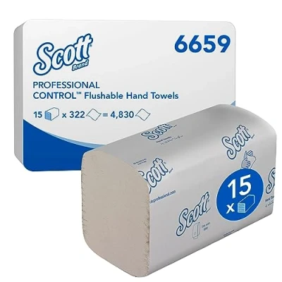 Scott Control Flushable Folded Hand Towels 6659 Disposable Paper 15 Packs x 322 White (4,830 Total)