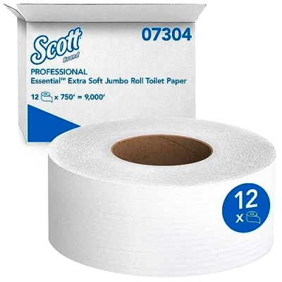 Scott Essential Jumbo Toilet Paper (JRT) comes with 12 rolls per case, 750 feet per roll (9,000 feet per case) Guests appreciate the premium quality and softness, which helps create a comfortable washroom experience; superior quality and fluffy feel means less usage and less waste The 2-ply, high-capacity, big rolls fit with compatible dispensers – either side-by-side dual dispensers or single dispensers You may need to change the rolls less frequently, for maintenance cost savings (even in commercial and industrial settings) This Cottonelle Jumbo Roll Toilet Paper is FSC-certified and meets EPA minimum guidelines with 25% recycled fiber content (RF) and 20% post-consumer waste