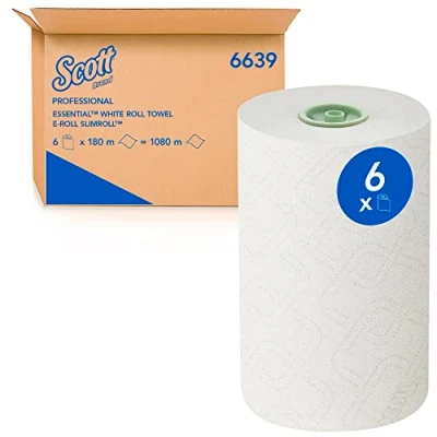 Scott Essential Slimroll Rolled Hand Towels 6639 E Roll Paper 6 x 180m White Towel Rolls (1,080m total)