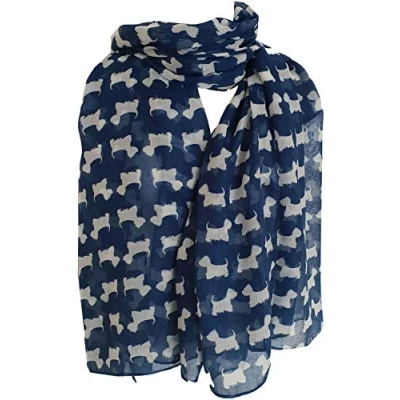 Scottie Dog Scarf Westie Dogs Breed West Highland Scottish Terrier Ladies Womens Wrap Shawl Sarong (Blue Navy)(Size: L)