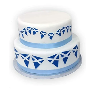 Scottish Flag Patterned Bunting Icing Sheet Cake Topper Decoration You will receive bunting toppers as shown in the photo and they require cutting out with sharp scissors. The triangles can then be arranged on your cake to form bunting. Printed with Edible Inks onto an A4 Decor Icing sheet - Large triangles 5cm tall and small triangles 2.5cm tall Great Patriotic bunting for any occasion Decor Sheet Ingredients - E1422,E1412,Maltodextrin,Humec, Manufacturer: Top That