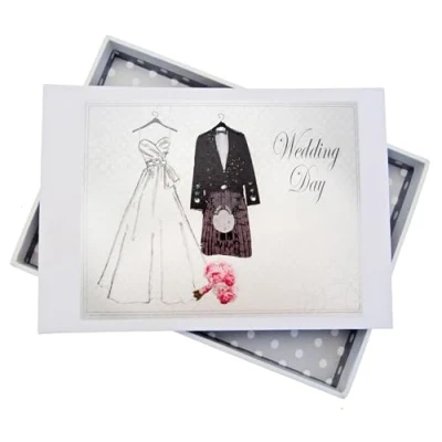 Scottish Wedding. Tiny Photo Album. Bride & Groom Kilt Design. Hand Finished by WHITE COTTON CARDS (WK1T)
