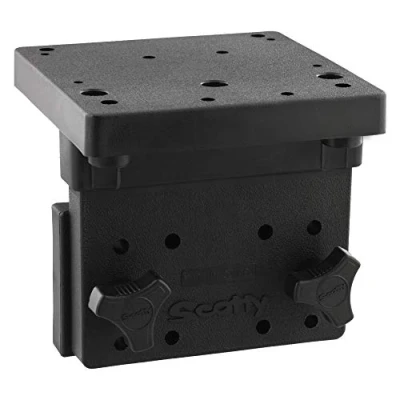 A great mount option for boats with narrow or uneven gunnels Includes quick fastening stainless steel mounting knobs for easy set-up and removal This strong and durable mount fits all Scotty Downriggers and can be used with No. 1026 Pedestal Swivel Mount Mount Dimensions: 6” x 6” x 6” Bolting Dimensions: 4” x 2”
