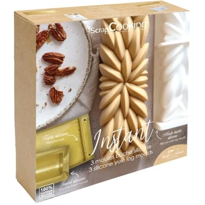 🎄 MAKE SUBLIME HOMEMADE LOGS - A set of silicone moulds for making instant Christmas logs, with their original and elegant shape. Delight and amaze your guests at the end of the year with frozen logs or pastry chefs worthy of a great pastry chef. ✨ A complete kit – Contains the necessary accessories for making your logs: 1 3D silicone log mould + 1 silicone insert mould + 1 silicone sponge cake mat + a recipe book with two gourmet inspirations. Dimensions of the log mould: 25 x 8 x 8 cm. Insert mould size: 25 x 3.5 cm. Mat size: 30 x 8 cm. Makes 25 cm long logs for approximately 8 people. 👍 QUALITY ACCESSORIES - These molds are made of 100% platinum silicone and are food safe. They offer quick and easy release thanks to the special non-stick coating that does not stick. Resistant to high temperatures (-20°C to +230°C), refrigerator, freezer, microwave and oven safe. Easy to clean in the dishwasher. Colour: gold. Recipe inside: this pastry kit contains a colour booklet with 2 delicious recipes that are easy to make: red fruit log and vanilla caramel pecan log. Amaze and delight your guests with beautiful and gourmet achievements for your New Year's Eve or Christmas Day meal. French brand – ScrapCooking is a French brand that has been designing fun products for everyone since 2005 to make and beautify its pastries and homemade sweets. All of our products are designed in France, in our workshops in Fondettes (37).