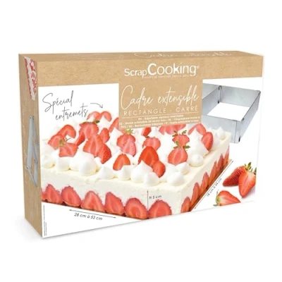 ScrapCooking 1911 Extendible Rectangular Cake Frame 29.5 x 20 6 cm Stainless Steel Silver
