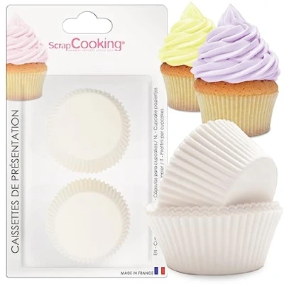 DECORATE YOUR CUPCAKES - A set of 36 white presentation cases to dress up your homemade cupcakes and muffins. With their elegant style, they are the ideal gift for a birthday, a big event or to recreate the magic of the holidays! 36 PRESENTATION CASES - This kit contains approximately 36 food safe paper presentation cases. Dimensions: 5.3 x 8 x 3 cm DISCOVER OUR CAISSETTES - Cupcake & Muffin Lover? Dress them up with our cupcake cases and their different themes: Mermaid, Tropical, Unicorn, Halloween, Polka Dots, etc. Also opt for our silicone muffin mould: 6 muffin mould (ref. 3117) and mould for 12 muffins (ref. 2990). French brand - ScrapCooking is a French brand that has been designing fun products for everyone since 2005 to make and beautify your homemade pastries and sweets. All of our products are designed in France, in our Fonette workshops (37).