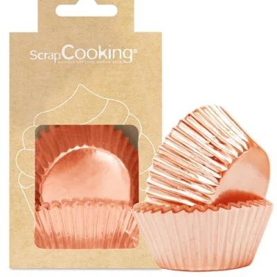 ScrapCooking Set of 48 Rose Gold Cupcake Cases and Muffins Presentation for Pastries Copper Metallic Effect 5065