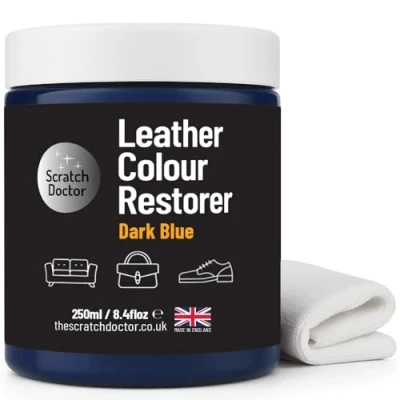 Scratch Doctor Leather Colour Restorer Recolouring Balm Repair Treatment for Faded & Worn Absorbent Furniture, Sofas, Chairs (Dark Blue, 250ml)