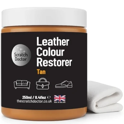 Scratch Doctor Leather Colour Restorer Recolouring Balm Repair Treatment for Faded & Worn Absorbent Furniture, Sofas, Chairs (Tan, 250ml)