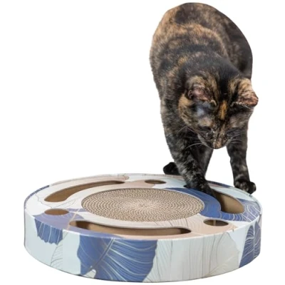 With stimulating effect and promotes the natural cat instinct of the game. . Made of cardboard. with 2 play balls (plastic). RPA2023 different versions