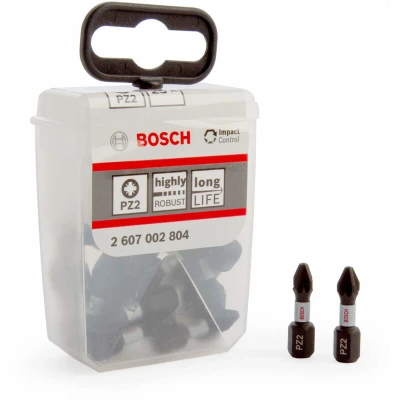 General description The Bosch PRO Impact Screwdriver Pozi Bits are an excellent choice for installers seeking robust, heavy-duty screwdriver bits. They are designed to withstand high torque and provide outstanding durability. Technical specifications Type: PZ2 Length: 25mm Material: Heat-treated modified steel Robustness: Up to 50x more robust than Bosch Extra Hard Bits Compatibility and accessories Suitable for use with impact screwdrivers Compatible with rotary drills/drivers Usage Ideal for heavy-duty applications Designed to absorb torque stress at the bits’ tip to prevent breakage