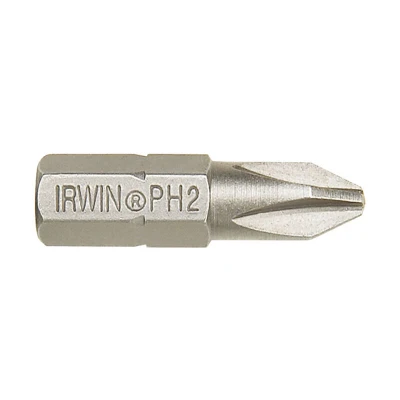 General description IRWIN® Phillips Insert Bits are designed for durability and long life, manufactured from industrial-grade S2 steel. This pack includes two 50mm Phillips PH2 bits, suitable for hand-driving applications or use with power tools when paired with an IRWIN® insert bit holder. The bits feature a compact and versatile 1/4 inch hex body and are engineered for use in insert holders with a C-clip for a retaining ring notch. Technical specifications Head Type: Phillips Length: 50mm Pack Quantity: 2 Size: PH2 Type: Phillips Other information