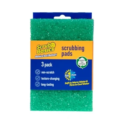 Scrub Basics Scrubbing Pads Non Scratch Scouring with Texture Changing Technology, Dish Scrubber Scourers Sponge for Washing Up, Cleaning & Kitchen Pack of 3