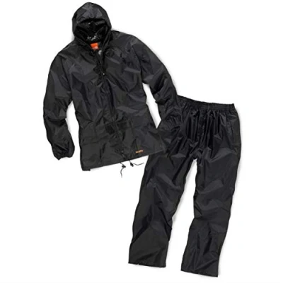 Taped seams, drawcord adjusters and stud fasteners to keep water out when working Lightweight and loose fitting for ease of movement Features 2 outer pouch pockets for easy storage Adjustable hood, elasticated cuffs and front-fastening zip with storm flap 65 percent polyester, 35 percent PVC, 190T, Weight: 2.20462262 pounds, Manufacturer: Scruffs