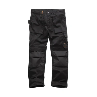 Regular fit work trousers made from lightweight, durable twill fabric for all-day comfort and performance. Top-loading, Abratect abrasion-resistant knee pad pockets for enhanced durability. Front bellowed patch pockets, cargo pocket, rule pocket and mobile phone pocket. Hammer loop and D-ring for tool and accessory storage. Hard-wearing Abratect reinforcements. Triple-stitched seams and reinforced hem provide lasting durability. YKK zipped fly. 65% polyester 35% cotton, 250gsm.