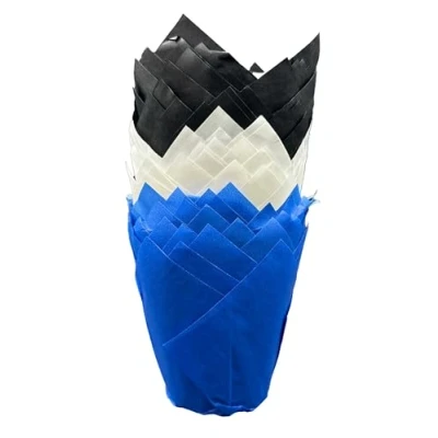 Scrumptious! 50PC Blue, Black and White Mix Greaseproof Paper Muffin Tulip Cases for Baking Great Birthday Party Cakes Bakes