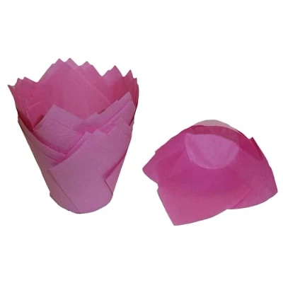 Scrumptious - 50PC Greaseproof Paper Muffin Tulip Cases for Baking - Cerise - Perfect for Birthday Party, Wedding and Anniversary Cakes and Bakes