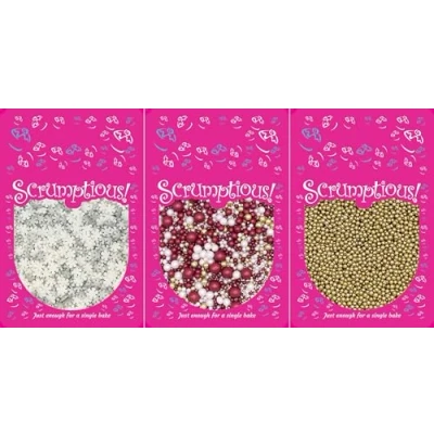 THREE VARIETIES - Pearls Mix - Mulled Wine, Festive Snowflakes, 4mm High Shine Gold Pearls. Great for Christmas party bakes CHRISTMAS THEME - Perfect party decorations for adding a touch of festive decoration to your cakes. Perfect for all occasions and events. Enhance your Christmas cakes and bakes with a contemporary twist MIXED SPRINKES - These carefully selected sprinkles offer a combination of finishes, bringing different colours and textures along a common theme to your creations A GREAT GIFT - Our Scrumptious! Bundles are a great gift for bakers! This unique present will delight any baking fan of any age. The ideal stocking filler! HAND PACKAGED - Our UK-based headquarters meticulously hand-packages each pouch, ensuring that every little bag is carefully selected just for you, Manufacturer: Truly (UK) Ltd
