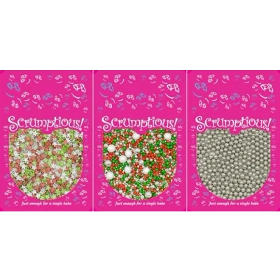 THREE VARIETIES - Pearls Mix - Twinkle Christmas, Red, Green and Silver Stars, 6mm High Shine Silver Pearls. Great for Christmas party bakes CHRISTMAS THEME - Perfect party decorations for adding a touch of festive decoration to your cakes. Perfect for all occasions and events. Enhance your Christmas cakes and bakes with a traditional twist MIXED SPRINKES - These carefully selected sprinkles offer a combination of finishes, bringing different colours and textures along a common theme to your creations A GREAT GIFT - Our Scrumptious! Bundles are a great gift for bakers! This unique present will delight any baking fan of any age. The ideal stocking filler! HAND PACKAGED - Our UK-based headquarters meticulously hand-packages each pouch, ensuring that every little bag is carefully selected just for you, Manufacturer: Truly (UK) Ltd