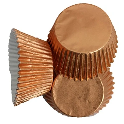 Copper Foil Cupcake Cases 38mm height 51mm base Foil coated 30 cases stored in a resealable and reusable pot