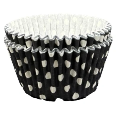 Scrumptious! Cupcake Cases Dotty Black 24PC 65GSM 51mm x 38mm Polkadot Greaseproof Paper Baking Great for Spooky and Halloween Themed Party Muffins, Cakes Bakes